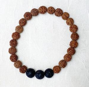 This sacred rudraksha bracelet is adorned with three lava beads and double-strung on stretch cord. Lava stones are said to have very powerful spiritual effects on the mind. You can place 1-2 drops of your favorite essential oil on the lava beads to diffuse throughout the day. Bracelet measures approximately 7” and will stretch to fit most. Purchase as a SET with the Rudraksha Lava Sandal Earrings and save $4.00!