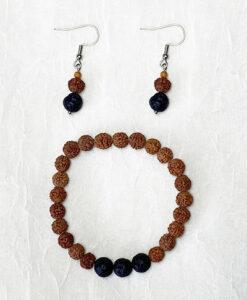 Rudraksha Sandalwood Lava Bead Bracelet and Earring Set