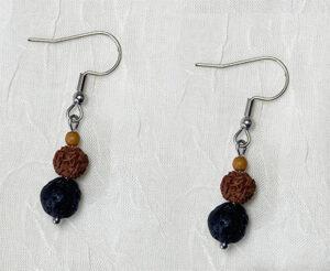 White sandalwood, sacred Rudraksha, and lava beads come together in a powerful combo to uplift your spiritual practice in simple elegance. You can place 1-2 drops of your favorite essential oil on the lava beads to diffuse throughout the day. These earrings feature hypo-allergenic, surgical stainless steel French hook ear wires. Earrings measure approximately 1 ½” in length. Purchase as a Set with the Rudraksha Lava Bead Bracelet and save $4.00!