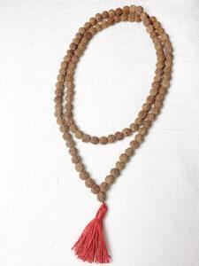 This sacred mala features 108 genuine rudraksha beads + 1 bindu/Guru bead, strung on a 100% red silk cord with a red silk tassel. Mala is approximately 17 inches in length (from top fold to bindu/Guru bead).